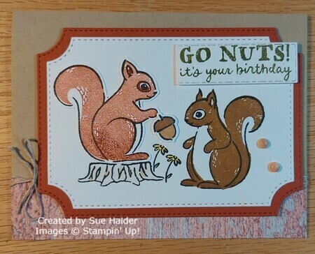 This saying from the Fluffy Squirrel stamp set is a perfect birthday greeting. To get the stamp set and punch, shop my store at https://www.stampinup.com/?demoid=2029234