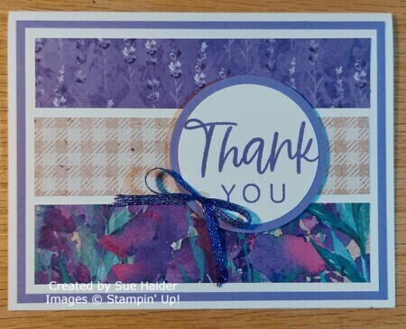 This card, made with the Perennial Lavender printed paper, really shows the coordination between all Stampin Up products. The ink, cardstock, and printed paper all match. Shop for Stampin' Up! products in my store at https://www.stampinup.com/?demoid=2029234