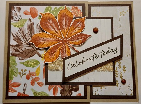 The Artistic Leaves stamp set is a two-step set -- I used both Cajun Craze and Pumpkin Pie inks to stamp the leaf. The printed paper is Gathering Together and includes great Fall images. Shop my store at https://www.stampinup.com/?demoid=2029234 CASE'd from demonstrator Tracy McDonnell